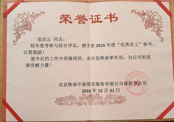 2016年公司部分優(yōu)秀員工