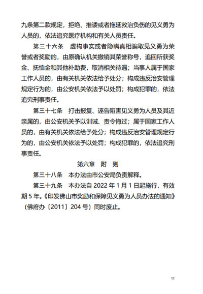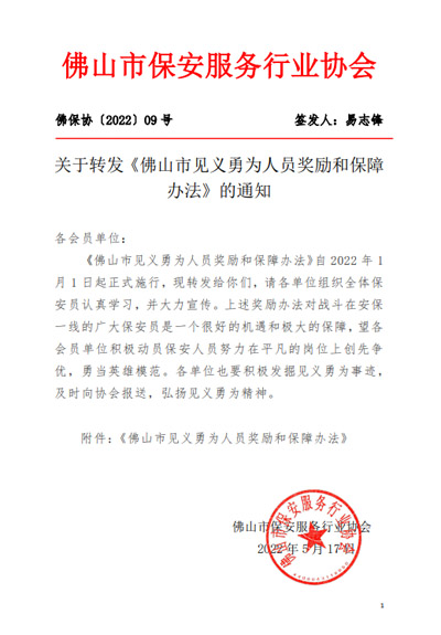 關于佛山市見義勇為人員獎勵和保障辦法通知